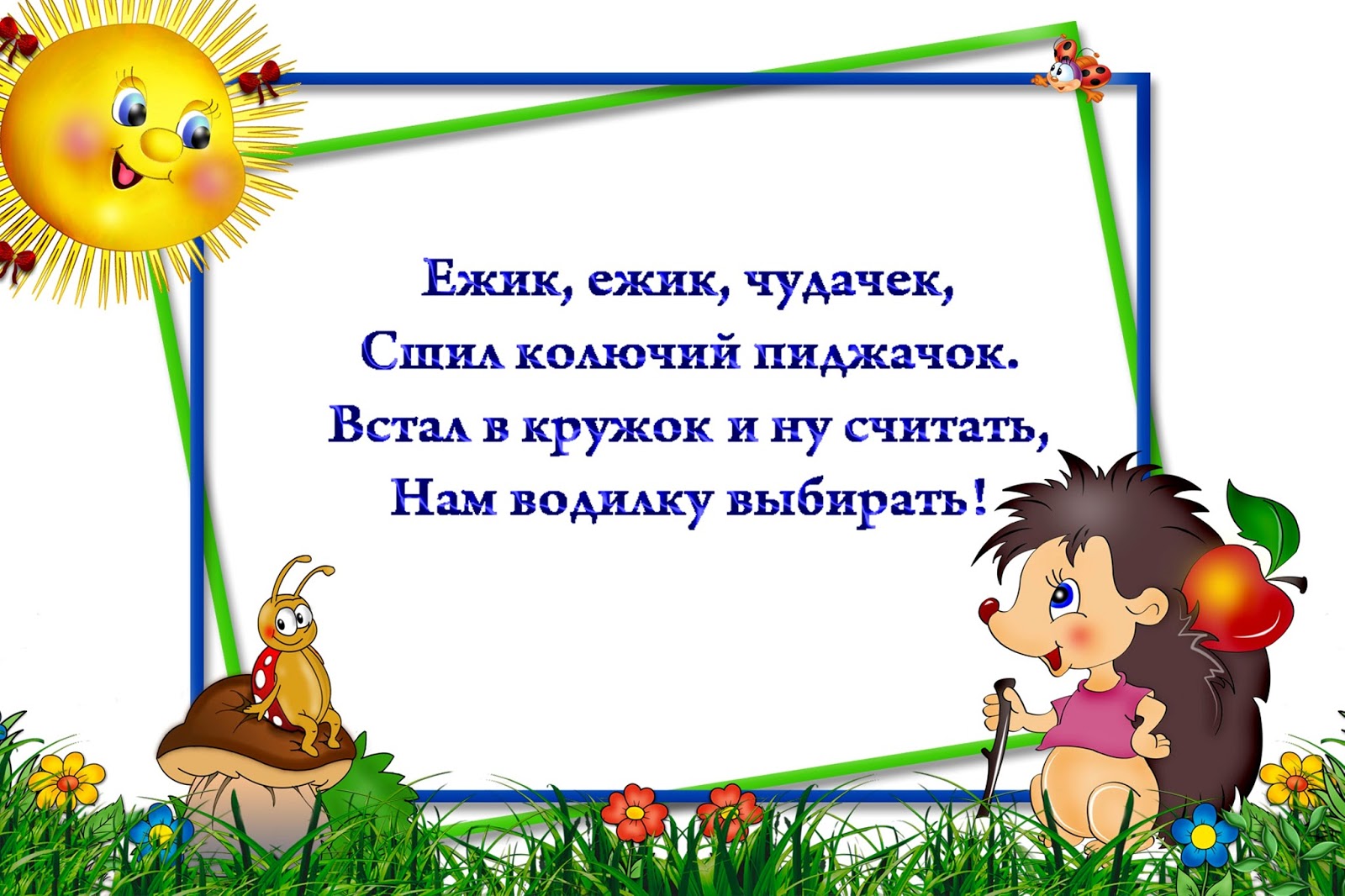 Рассмотрите картинку выше. Поговорите с ребенком о ее содержании. Прочитайте считалку, которая напечатана на картинке. Прочитайте «Веселую считалку». Спросите ребенка: